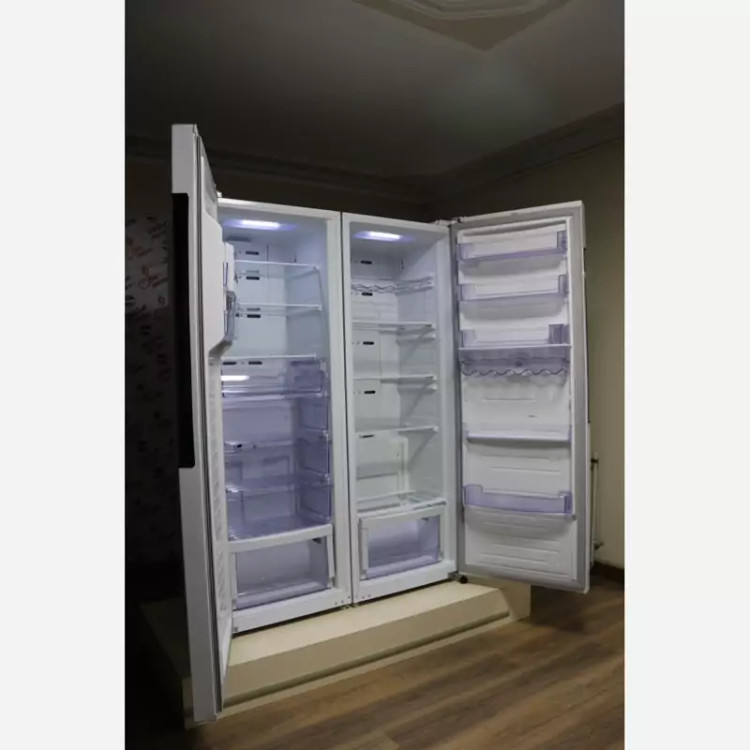 یخچال و فریزر 2024 فلت استیلون 40 فوت هرکدام 20 فوت دارای گارانتی 2 ساله نورپردازی داخلی صفحه دیجیتالی بدون برفک در رنگهای سفید ونقره ای ارسال در تبریز رایگان